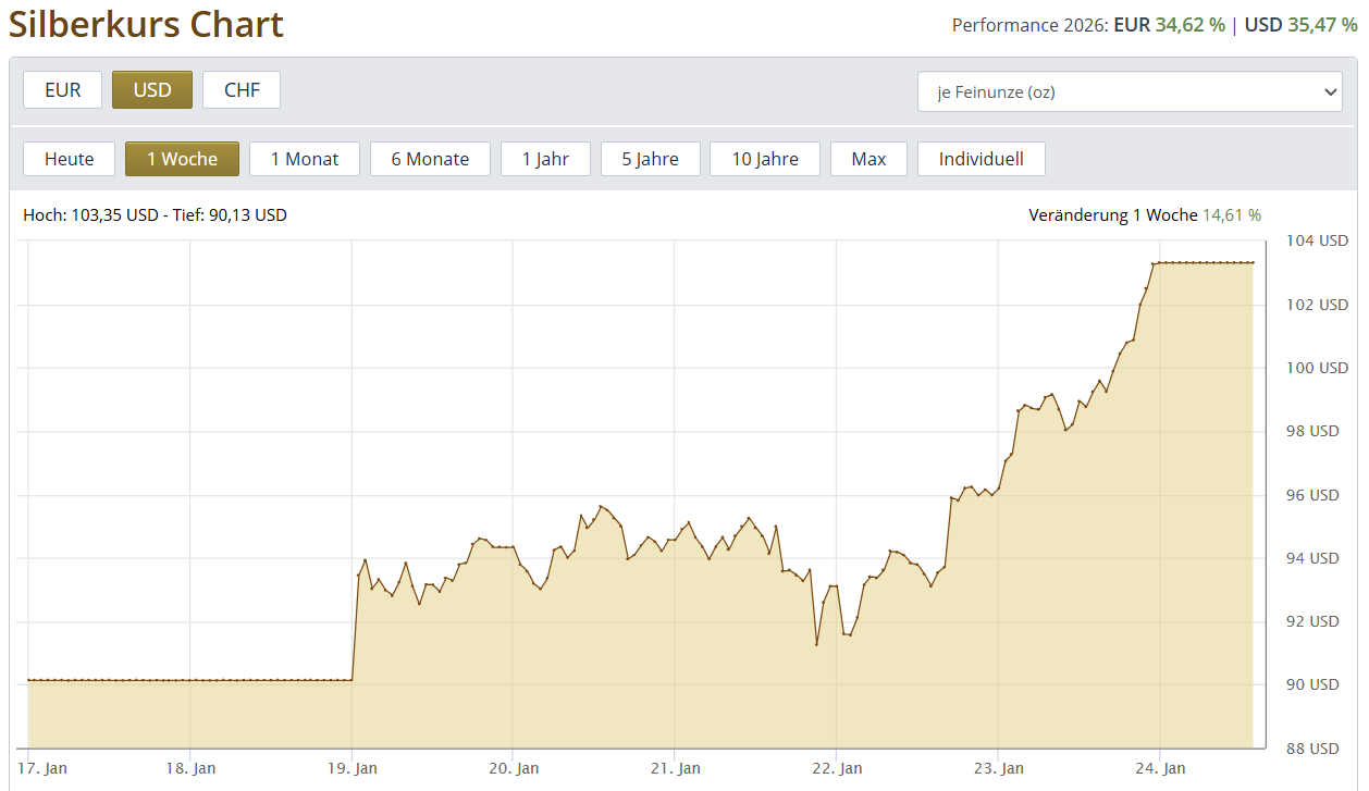Gold steht kurz davor, die 5000-Dollar-Marke zu knacken; Silber hat die 100-Dollar-Marke überschritten.